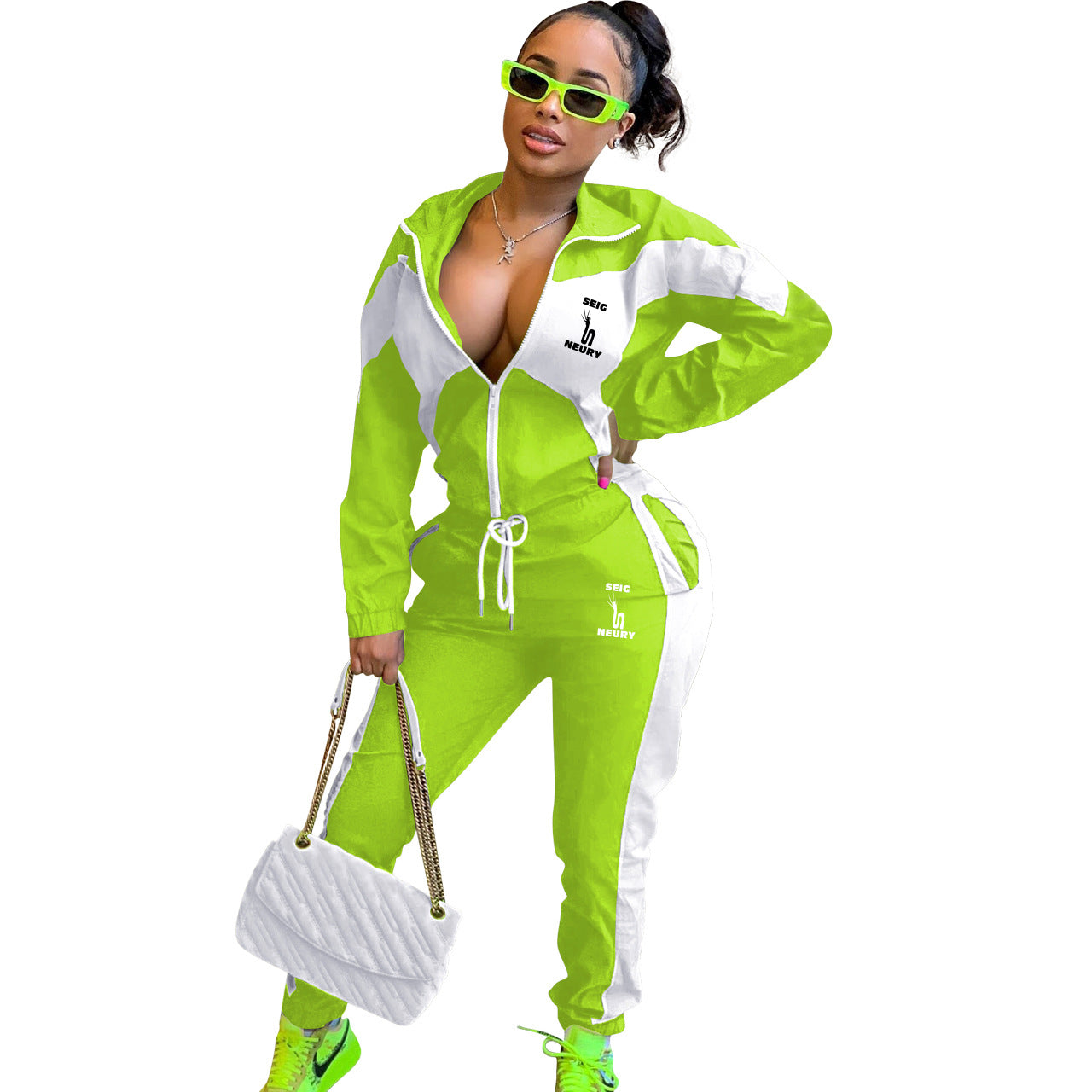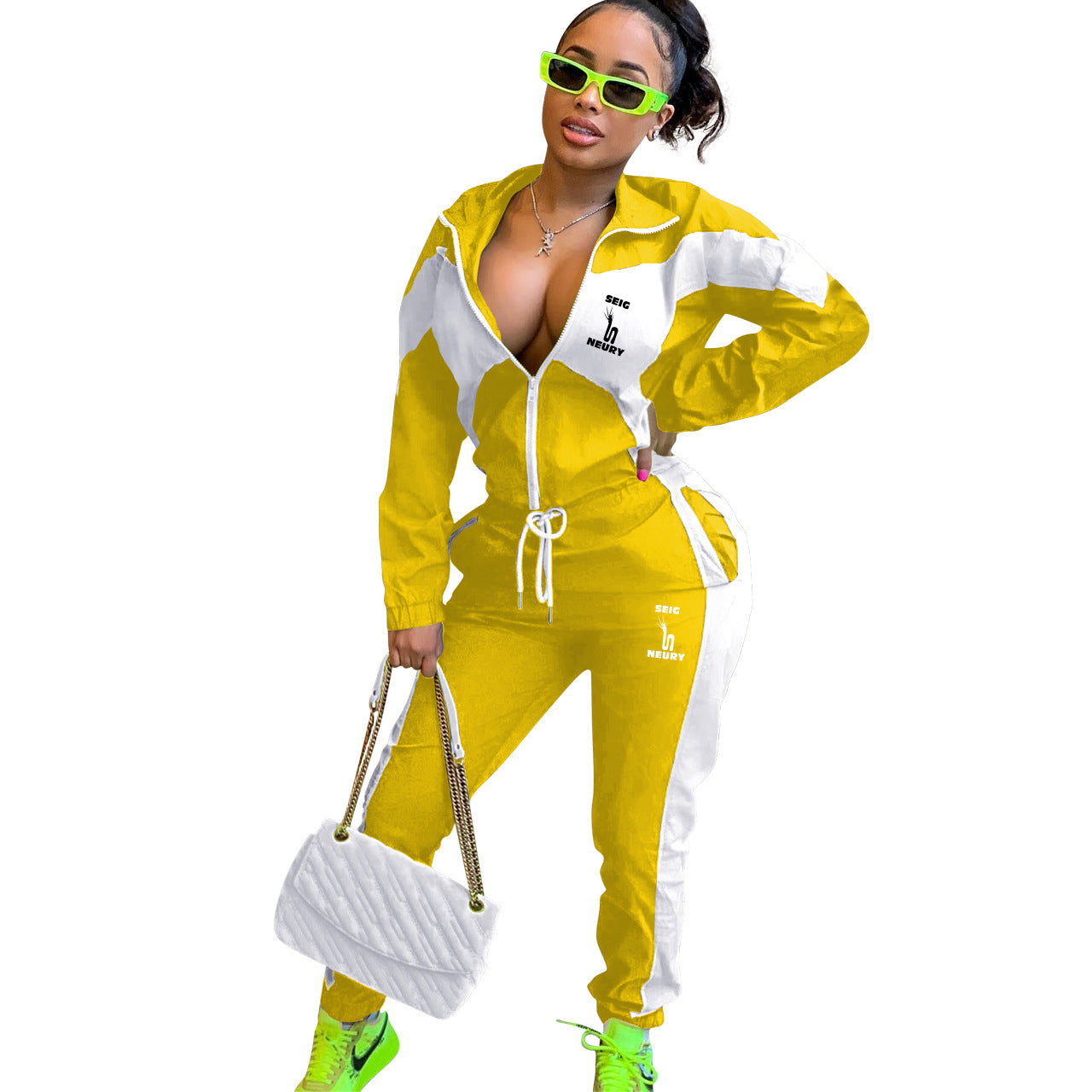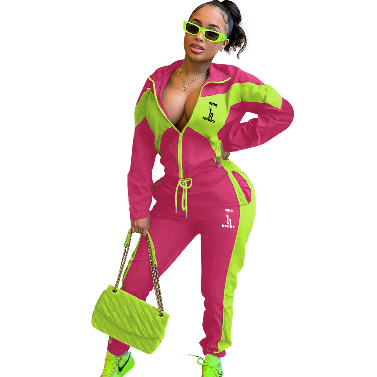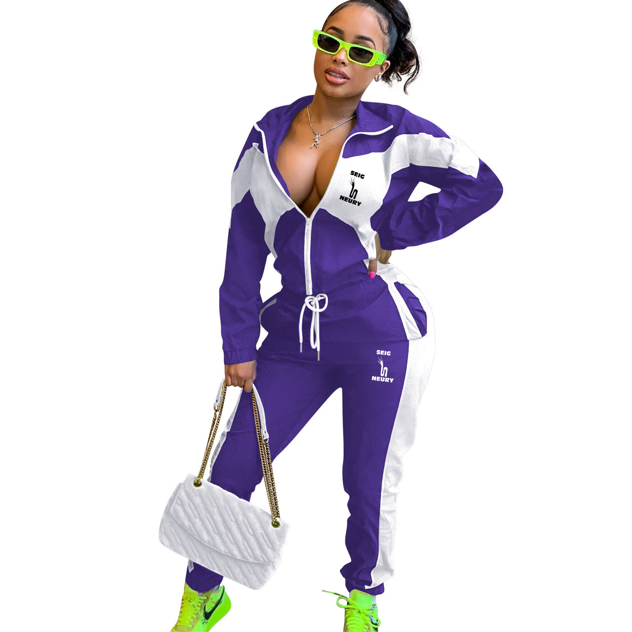 ENSEMBLE DÉCONTRACTÉ FEMME – CARDIGAN ZIP & PANTALON PATCHWORK | SEIGNEURY