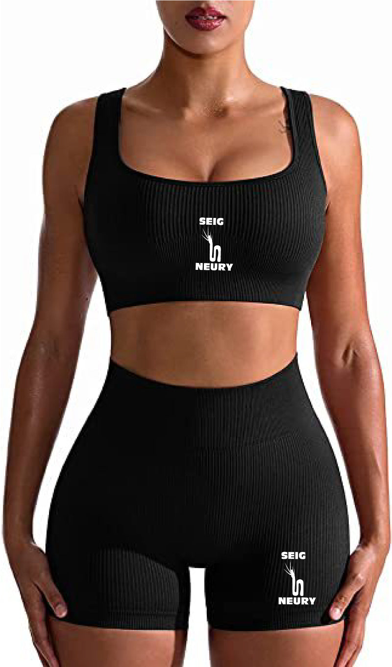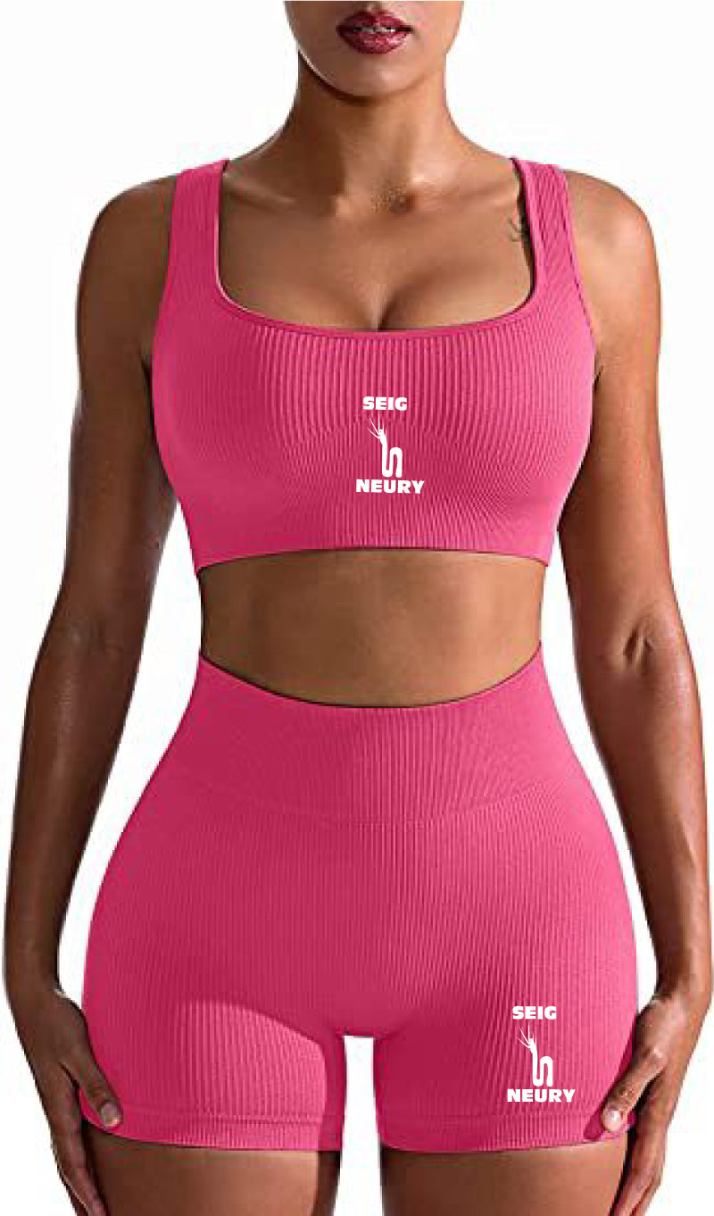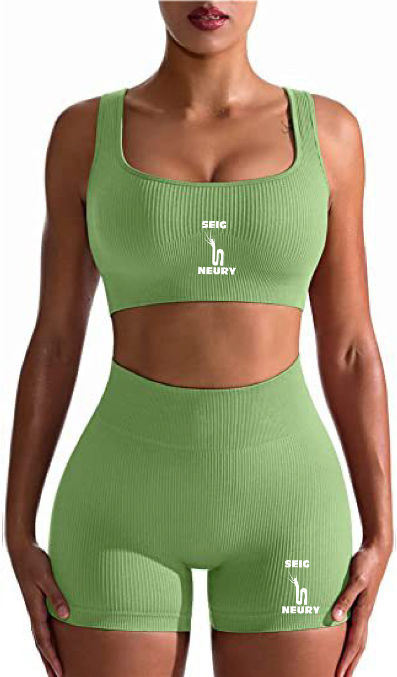 Ensemble de yoga sans couture SEIGNEURY : soutien-gorge gilet et short taille haute, en nylon et élasthanne, conçu pour le confort, la performance et le style. Idéal pour le yoga, le fitness et le cyclisme. Nouvelle collection 2025, plusieurs coloris disponibles.